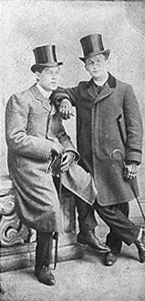 Hardeen, dressed up in Europe. Houdini is in the dark coat.